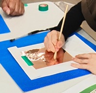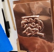 ② 銅板を裏返し、文字の輪郭の内側を、ヘラでこする