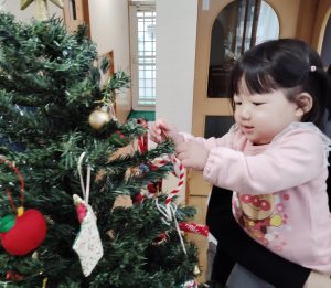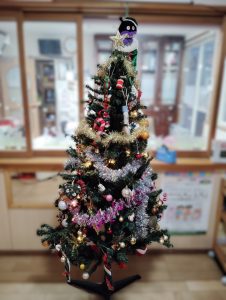 こどもたちと一緒にクリスマスツリーの飾りつけをしました。