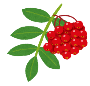 散策中、帽子をかぶった「どんぐり」や「ななかまど」の
