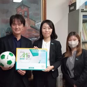 この度は、Jリーグ協力のもと全国の子どもたちにサッカーボールを届けておられるとの事で、その一つを当園に持ってきて下さっています。